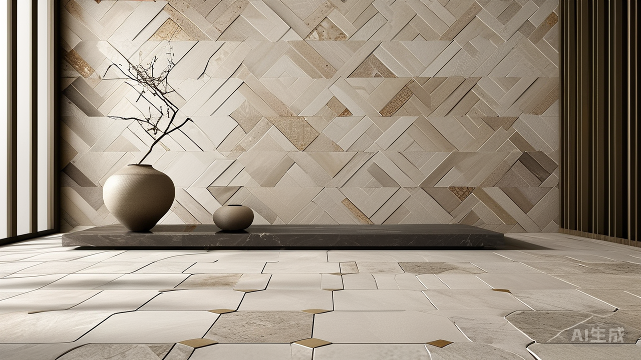 中性色系构筑的空间底色具有超越时空的包容性。米兰理工大学的色彩实验室研究表明,50-70%灰度区间的米白、浅灰与暖咖色,能适配90%的装修风格且不易产生视觉疲劳。建议将主色面积控制在空间的70%,局部可点缀深色系增加层次,但需注意深色瓷砖的显尘指数(DCI)应低于0.3,确保实用与美观平衡。 二、纹理进化论:自然基因的当代转译 天然材质的仿生纹理需遵循"三分形似,七分神似"的原则。葡萄牙砂岩的流动肌理、挪威雪松的年轮截面,通过数码釉技术转化为0.05mm精度的立体触感,既保留自然气息又规避真实材质的缺陷。几何纹理则建议选择黄金分割比例的切割形态,避免过于尖锐的异形设计造成视觉压迫。