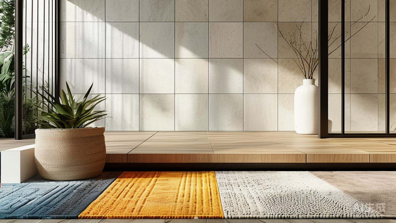 • 地毯矩阵:玄关铺剑麻+客厅羊毛毯+走廊定制尺寸毯 • 防腐木地板:阳台直接架空铺设,留3cm伸缩缝 • 橡胶地垫:儿童房首选,厚度建议8mm以上 二、视觉调整方案