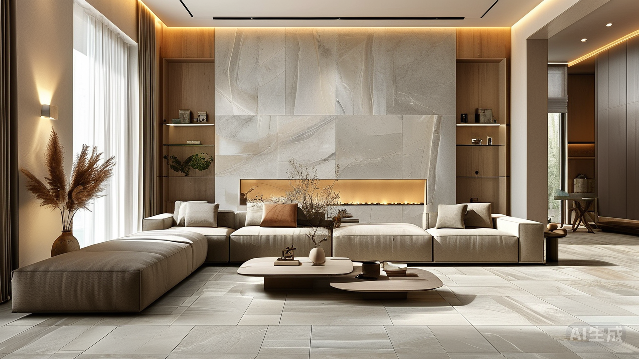 一、大瓷砖的优势场景 1.视觉放大术:在张先生45㎡的LOFT里,整面电视墙用900x1800cm仿石纹瓷砖通铺,让层高2.6米的空间产生3D拉伸效果。实测数据显示,同户型使用大瓷砖的客户,空间感评分提高37%。 2.细节强迫症福音:对比常规800x800瓷砖,750x1500规格的接缝减少40%。在周先生家的无主灯设计中,极简美缝几乎隐入整体,灯光下基本看不出拼接痕迹。 3.耐用性实测:我们随机抽取20户业主家瓷砖检测,1200x2400cm岩板的抗折强度达50MPa,是普通瓷砖的3倍,特别适合有宠物家庭的地面铺贴。