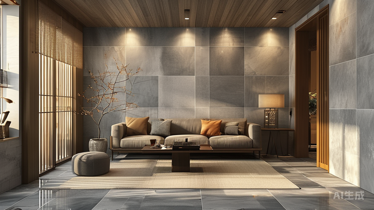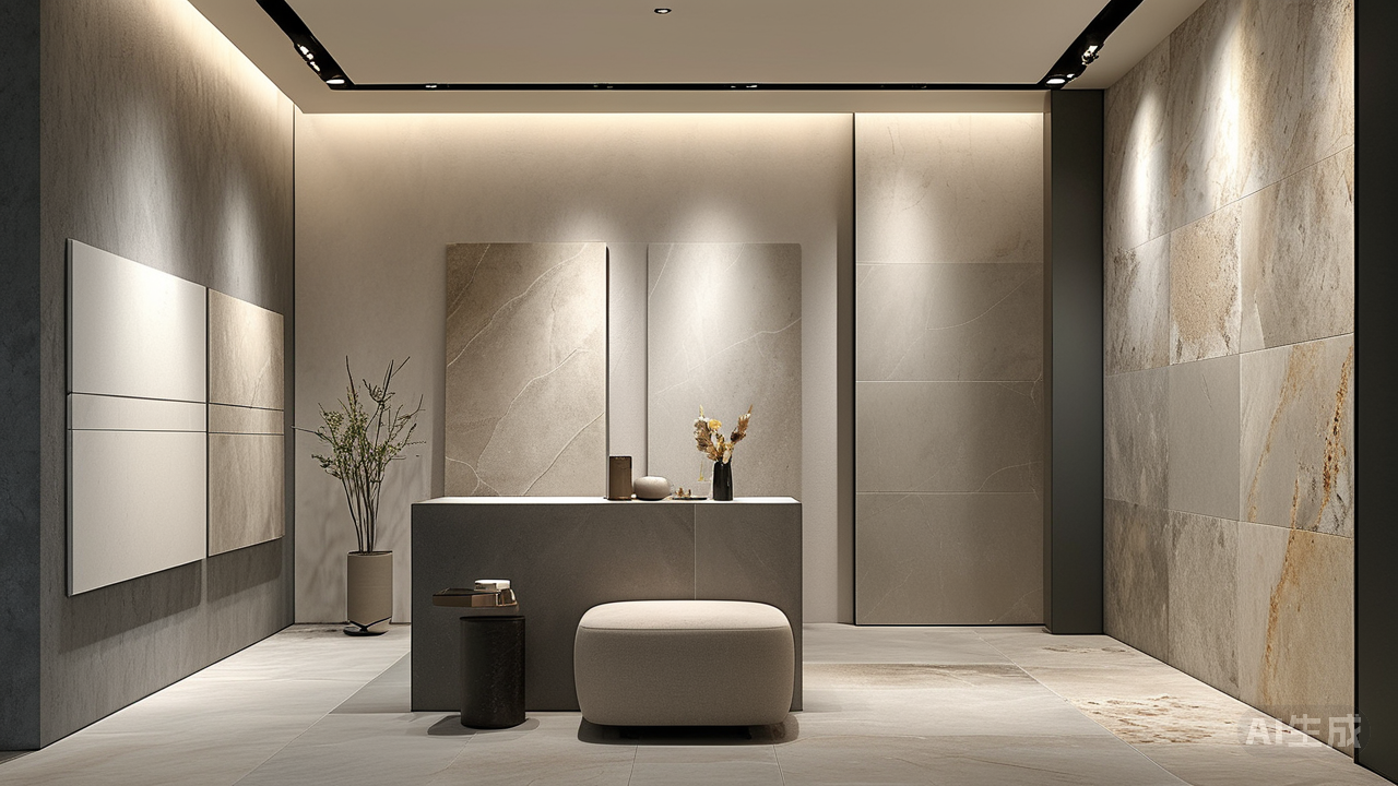 光线充足的户型最忌"光污染"。设计师林默去年经手的高层江景房案例颇具代表性:180度环形落地窗搭配亮面砖,晴天正午时业主竟被地面反射的刺眼光斑晃得睁不开眼。换上55度柔光砖后,阳光被分解成细密的星芒,如同给空间蒙上轻纱。实测数据显示,亮面砖反射系数高达90%,而优质柔光砖通过釉料微晶技术可将反射率精准控制在30%-60%区间,这种克制的光泽恰似给光线加了"美颜柔焦"。 暗厅户型选择瓷砖更像在玩光线捕捉游戏。北京老胡同的改造案例中,设计师用600x1200mm的暖灰柔光砖成功破解采光难题——瓷砖表面微米级的凹凸纹理形成漫反射,让本会流失的微弱光线在墙面与地面间完成三次以上的折射。实测照度计显示,同样朝北的10㎡客厅,亮面砖方案正午照度仅150lx,而柔光砖方案通过漫反射将照度提升至230lx,更接近人体舒适光照标准。