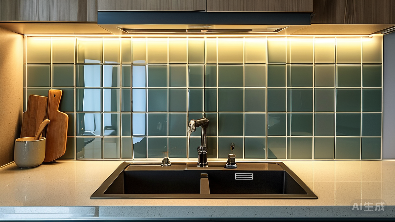 * **正确做法:** 务必选用**优质防霉玻璃胶**(如中性硅酮胶),沿台面与瓷砖接缝处均匀、饱满地打胶密封,确保形成连续无断点的防水屏障。边缘务必完全覆盖,不留渗水通道。