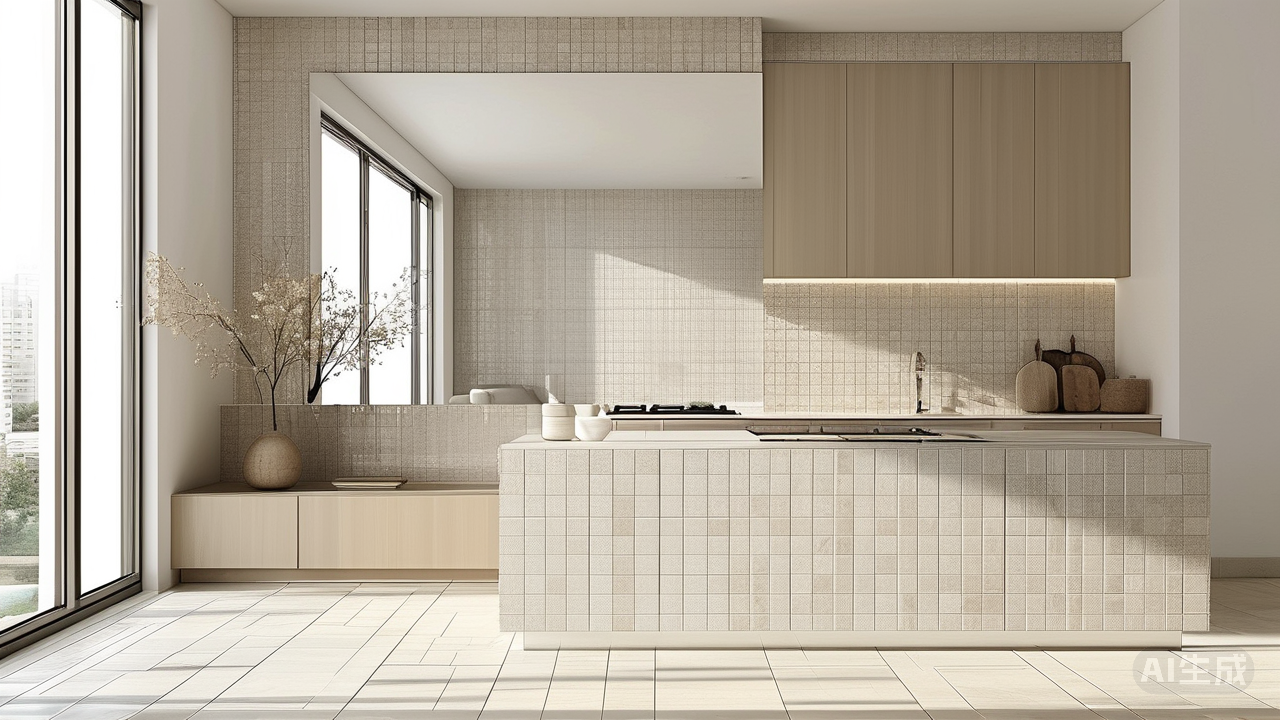 小户型厨房瓷砖技巧:浅色系瓷砖 + 镜面元素,显大不压抑拥挤不堪的灶台、转身即撞的局促——当你的厨房面积小于5平米,每一次烹饪都可能变成一场与空间的较量。如何让狭小的厨房告别压抑,拥抱开阔与明亮?一套精心规划的瓷砖方案便是关键钥匙。 色彩魔法:空间扩张的视觉密码 浅色系瓷砖是小厨房的扩容首选。纯白或柔和的奶油白如同无形的画笔,在视觉上悄然推远四面墙壁,将天花板向上延伸。若担忧纯白过于清冷,不妨选择暖调的米白或略带灰度的浅灰,既保留空间的开阔感,又为厨房注入一抹温馨底色。墙面与地面采用同色系或相近色调的搭配,可消除空间割裂感,让视线自由流动,进一步放大空间感。