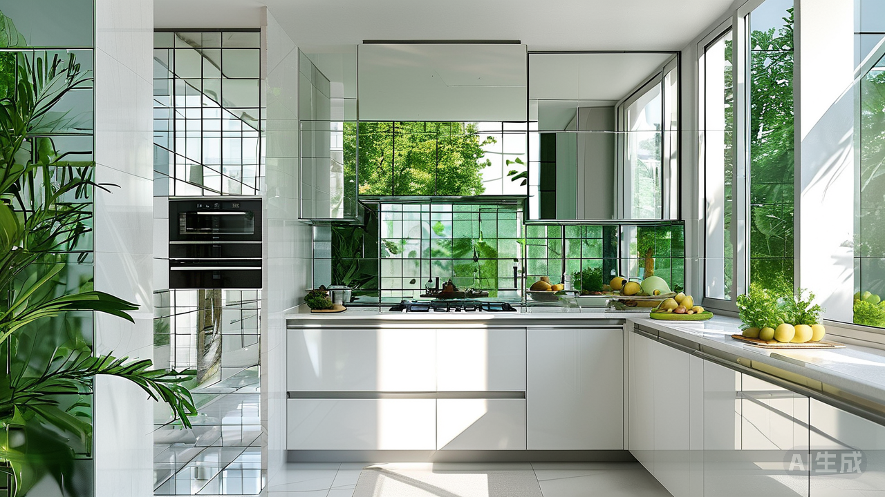 镜面魔法:光与影的灵动协奏 镜面元素的引入,是点亮小厨房的点睛之笔。在灶台防溅墙或窄小侧墙局部铺贴亮面瓷砖或小块马赛克,它们如同光的捕捉器,瞬间反射光线与窗外景物——清晨阳光斜射,瓷砖表面光斑跳跃,窗外绿意被巧妙复制,厨房边界在虚实之间溶解。一处精心设计的镜面窄柜门,不仅反射光线扩大空间,柜门开合间更让逼仄感荡然无存。