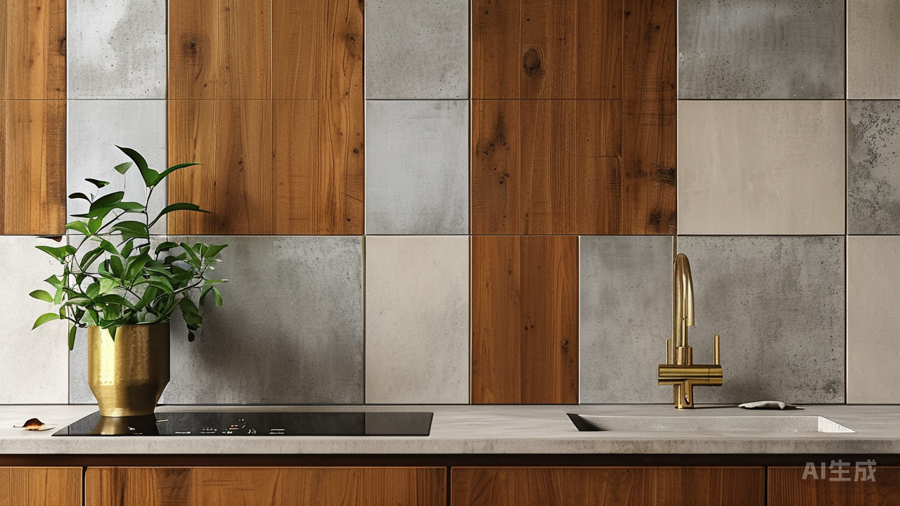 3. 功能融合:实用与美学的平衡 厨房灶台墙面使用木纹砖,其耐磨防污特性优于实木,且接缝少于小尺寸瓷砖。卫生间干区采用防水木纹砖墙地一体铺贴,搭配黄铜五金和绿植,既能规避潮湿隐患,又延续了北欧风或日式风的自然气息。 4. 创意混搭:突破材质边界