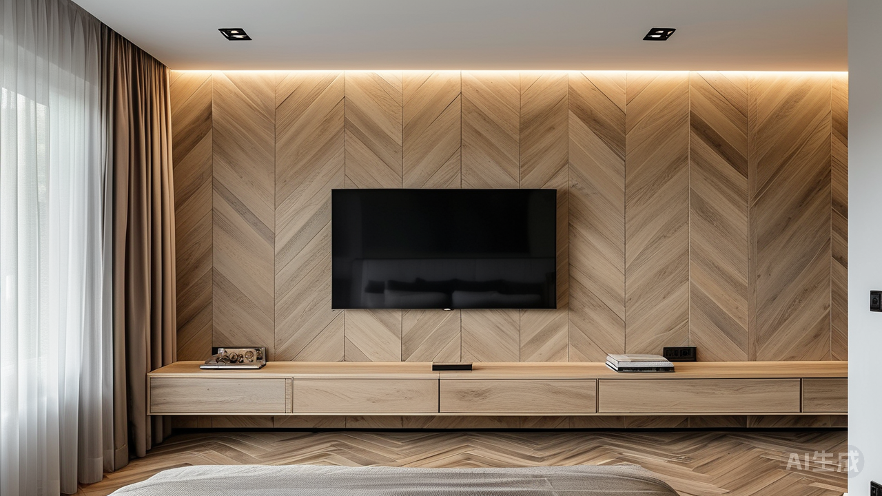 木纹砖的应用新场景:除了地板,它如何成为墙面装饰的温馨选择?木纹砖早已不是地板专属,它正悄然爬上墙面,为空间注入别样的温度与质感。 1. 局部点缀:营造视觉焦点 在客厅电视墙或卧室床头,竖向铺贴浅色木纹砖能拉伸层高,搭配隐藏灯带后,光影掠过砖面凹凸的木质肌理,营造出静谧的层次感。相较于冰冷的大理石,木纹砖的暖调更易营造放松氛围。 2. 整体覆盖:构建包裹感空间 小户型阳台或书房常面临采光不足的困扰。采用鱼骨拼或人字拼木纹砖满铺墙面,配合相近色调的家具,能形成视觉统一感。哑光表面的砖体在漫反射光线下更显柔和,削弱狭小空间的压抑感。