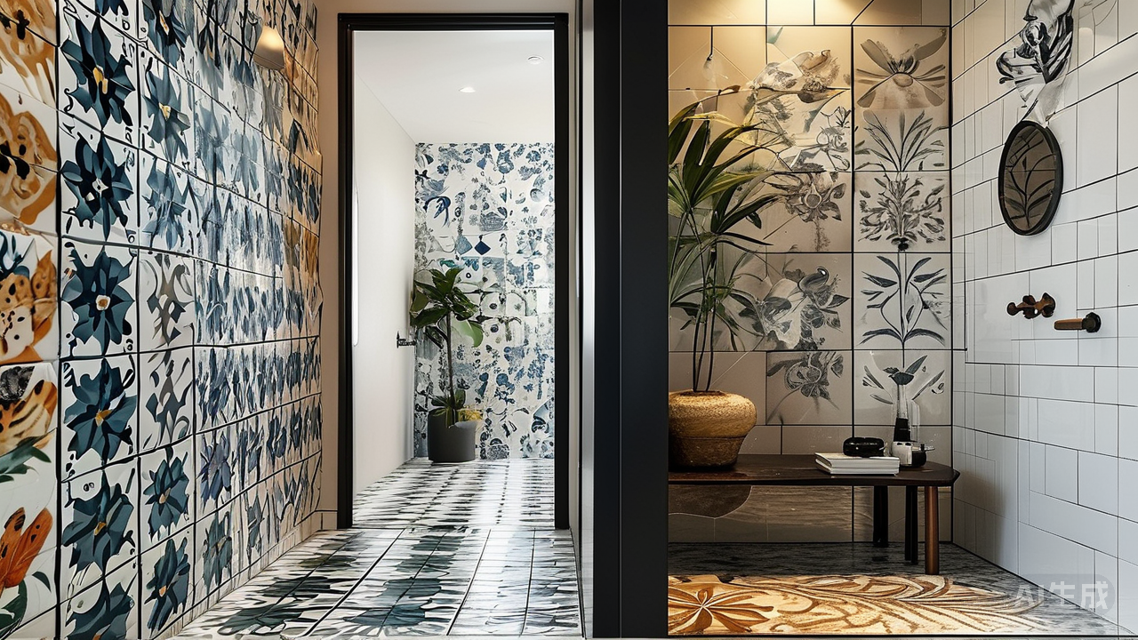 巧妙搭配,释放色彩的极致魅力 运用这两种瓷砖时,关键在于平衡与呼应。