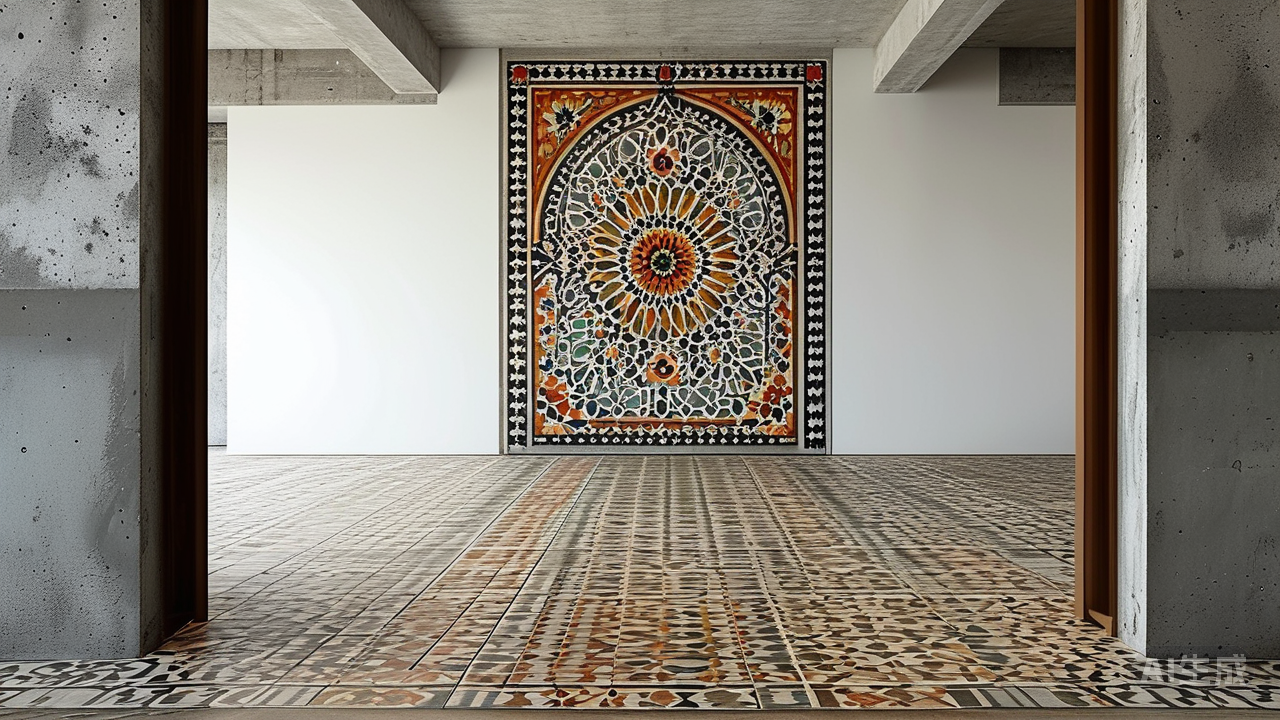 复古花砖:为硬核空间注入灵魂 如果说金属是空间的骨骼,那么复古花砖便是其跳动的脉搏与灵魂。它是对“工业风必须极简冷峻”的最大胆反叛,也是最有效的破局之道。 水泥自流平地面固然经典,却难免单调。在关键区域——如玄关、卫生间湿区、厨房防溅墙或吧台地面——铺陈一片复古花砖,瞬间能点燃整个空间。几何图形的理性排列,带有摩洛哥或维多利亚时期风格的繁复花纹,或是色彩浓烈的艺术图案,都能成为视觉的绝对焦点。花砖的精致与墙面、天花板的粗犷形成强烈对比,这种“冲突感”正是高级感的来源。