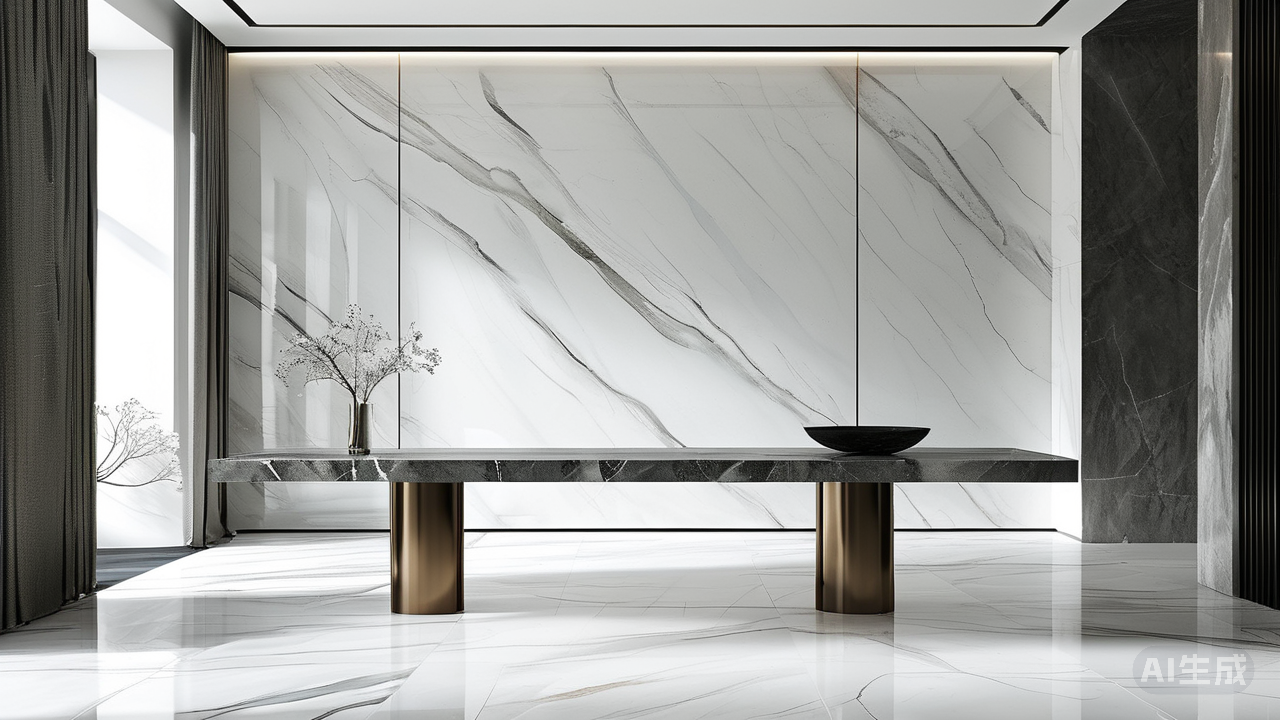 融合之道:共谱轻奢协奏曲 将二者融合时,关键在于把握平衡与呼应。例如,选择一款纹理相对简约的鱼骨拼大理石瓷砖,避免地面过于花哨,而后在空间的垂直立面——如家具的金属脚、灯具的支架、装饰摆件的细节上,重复使用同色系的金属元素。如此一来,上下呼应,整体感极强。 色彩搭配上,通常以鱼骨拼大理石的底色(白、灰、米色)为主色调,营造明亮、通透的空间感。金属线条则作为点缀色,提升质感。软装方面,搭配丝绒、羊绒等富有光泽或触感细腻的材质,以及线条流畅的现代家具,便能将法式轻奢的浪漫、精致与当代生活的舒适感完美结合。 最终,鱼骨拼大理石瓷砖与金属线条的携手,共同成就了一个充满细节与质感的空间。它们一个负责奠定优雅的基调并注入动态美感,一个负责描绘精致的轮廓与点睛之笔,共同诉说着属于现代法式的轻奢密语:那是一种无需言说的高级,一种流淌于细节中的艺术感。 |